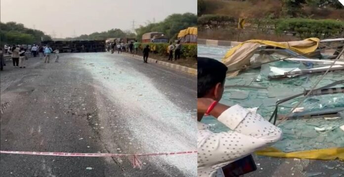 HomeGujaratAhmedabadAhmedabad : એક્સપ્રેસ હાઇવે પર અકસ્માત, કાચ ભરેલી ટ્રક પલટી મારતા અમદાવાદ-વડોદરા...