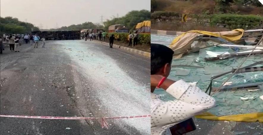 Ahmedabad : એક્સપ્રેસ હાઇવે પર અકસ્માત, કાચ ભરેલી ટ્રક પલટી મારતા અમદાવાદ-વડોદરા માર્ગ પર ટ્રાફિક જામ