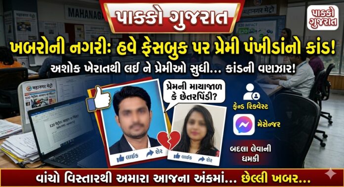 આજકાલ ગુજરાતમાં કાંડની વણઝાર લાગી છે. ક્યારેક અશોક ખેરાત જેવા મોટા માથાઓના કારનામા, તો ક્યારેક પવિત્ર સાધુ-સંતોના વેશમાં છુપાયેલા પાખંડીઓનો પર્દાફાશ. હજુ તો શિક્ષક અને વિદ્યાર્થીના પવિત્ર સંબંધોને લાંછન લગાવતા કિસ્સાઓની શાહી સુકાઈ નથી, ત્યાં જ બજારમાં એક ‘નવો કાંડ’ ગાજ્યો છે. આ વખતે શિકાર બન્યું છે ફેસબુકના રવાડે ચઢેલું એક ‘પ્રેમી પંખીડું’.