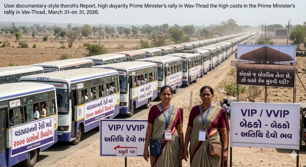 31 માર્ચ 2026ના રોજ વાવ-થરાદની ધરતી પર વડાપ્રધાન નરેન્દ્ર મોદીની ભવ્ય સભા યોજાઈ. ₹19,800 કરોડના પ્રોજેક્ટ્સના લોકાર્પણ અને આવાસ યોજનાની ચાવીઓના વિતરણના નામે ફરી એકવાર ‘વિકાસ’નું ગાણું ગવાયું. પરંતુ, આ ભવ્યતા પાછળ છુપાયેલા આંકડા અને વ્યવસ્થા કંઈક અલગ જ વાર્તા કહી રહ્યા છે.