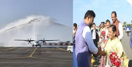 ભાવનગર-નવી મુંબઈ ફ્લાઇટનું વોટર સેલ્યુટ દ્વારા અભિવાદન કરવામાં આવ્યું હતું ત્યારબાદ કેન્દ્રીય નાગરિક ઉડ્ડયન મંત્રી કે. રામમોહન નાયડુ તથા કેન્દ્રીય રાજ્યમંત્રી નીમુબેન બાંભણિયા, કેબિનેટ રાજ્ય કૃષિમંત્રી શ્રી જીતુભાઈ વાઘાણી, ધારાસભ્ય શ્રી સેજલબેન પંડ્યા, ધારાસભ્ય શ્રી ગૌતમભાઈ ચૌહાણની ઉપસ્થિતિમાં ભાવનગર-નવી મુંબઈ ફ્લાઇટનું ફ્લેગ ઓફ કરવામાં આવ્યું હતું.