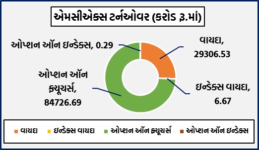 કોમોડિટી વાયદાઓમાં રૂ.29306.53 કરોડ અને કોમોડિટી ઓપ્શન્સમાં રૂ.84726.69 કરોડનું ટર્નઓવરઃ સોના-ચાંદીના વાયદાઓમાં રૂ. 21189.40 કરોડનાં કામકાજઃ બુલિયન ઇન્ડેક્સ બુલડેક્સ વાયદો 31283 પોઇન્ટના સ્તરે