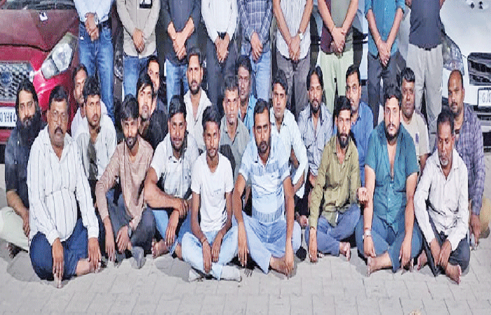 ૧. મુન્નેશ બુધ્ધસિંહ પ્રજાપતિ (રહે. કુબેરનગર, અમદાવાદત મૂળ ઉત્તરપ્રદેશ), ૨. નરેન્દ્ર પહેલવાનસિંગ પ્રજાપતિ (રહે. રામોલ, અમદાવાદ, મૂળ ઉત્તરપ્રદેશ), ૩. રામપ્રસાદ રામજીલાલ પ્રજાપતિ (રહે. નારોલ, અમદાવાદ, મૂળ ઉત્તરપ્રદેશ), ૪. રણજીત જગતસિંહ યાદવ (રહે. પેથાપુર, ગાંધીનગર, મૂળ ઉત્તરપ્રદેશ), ૫. સંદિપ મુકેશભાઇ રાઠોડ (રહે. ન્યુ રાણીપ, અમદાવાદ, મૂળ મધ્યપ્રદેશ), ૬. પ્રમોદકુમાર રામકુમાર ગુપ્તા (રહે. નવા વાડજ, અમદાવાદ, મૂળ મધ્યપ્રદેશ), ૭. દિનેશ અત્તરસિંગ કુશવાહ (રહે. ચાંદલોડીયા, અમદાવાદ, મૂળ મધ્યપ્રદેશ), ૮. રાજેન્દ્ર લક્ષ્મણસિંગ યાદવ (રહે. પીંપળજ, અમદાવાદ, મૂળ મધ્યપ્રદેશ), ૯. પ્રેમસિંગ ગંભીરસિંગ રાઠોર (રહે. ચાંદલોડીયા, અમદાવાદ, મૂળ મધ્યપ્રદેશ), ૧૦. રાહુલસિંગ અનારસિંગ પરીહાર ઠાકુર (રહે. ચાણક્યપુરી, અમદાવાદ, મૂળ મધ્યપ્રદેશ), ૧૧. સોનુંસિંગ રામબિહારી જાટવ (રહે. ચાણક્યપુરી, અમદાવાદ મૂળ મધ્યપ્રદેશ), ૧૨. મુકેશભાઇ કનુભાઇ ભરવાડ (રહે. નારોલ, અમદાવાદ), ૧૩. સુનિલકુમાર પ્રેમનારાયણ કહાર (રહે. મેઘાણીનગર, અમદાવાદ, મૂળ ઉત્તરપ્રદેશ), ૧૪. ધીરેન અમરસિંહ રાઠોડ (રહે. ચાંદલોડીયા, અમદાવાદ મૂળ મધ્યપ્રદેશ), ૧૫. જીતુ સુરેન્દ્રસિંહ રાજપુત (રહે. મેઘાણીનગર, અમદાવાદ, મૂળ ઉત્તરપ્રદેશ), ૧૬. બબલુ રામસેવક રાઠોડ (રહે. ન્યુ રાણીપ, અમદાવાદ, મૂળ મધ્યપ્રદેશ), ૧૭. વિક્કી કલ્યાણસિંગ કુશવાહા (રહે. ન્યુ રાણીપ, અમદાવાદ, મૂળ મધ્યપ્રદેશ), ૧૮. અરવિંદ જગદીશ પાંડે (રહે. ચાંદલોડીયા, અમદાવાદ, મૂળ મધ્યપ્રદેશ), ૧૯. જીતેન્દ્રસિંહ મંગલસિંહ જાટવ (રહે. ચાણક્યપુરી, અમદાવાદ, મૂળ મધ્યપ્રદેશ), ૨૦. માનસિંઘ રામવંશ કુશવાહ (રહે. ચાણક્યપુરી, અમદાવાદ, મૂળ મધ્યપ્રદેશ), ૨૧. ધર્મેન્દ્ર અમરસિંહ જાટવ (રહે. ચાણક્યપુરી, અમદાવાદ, મૂળ મધ્યપ્રદેશ), આ ઉપરાંત, આ કેસમાં ગુડ્ડુ ભદોરીયા (રહે. સેક્ટર-૨૬, ગાંધીનગર) નામના શખ્સને વોન્ટેડ જાહેર કરવામાં આવ્યો છે.