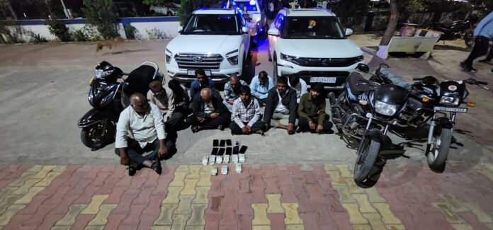 ​Gandhinagar : ૧૧ જુગારીઓ રંગેહાથ ઝડપાયા, ૬ વોન્ટેડ; કડી-મહેસાણાના શખ્સો ખેતરમાં જમાવતા હતા જુગારની મહેફિલ, ૫ વાહનો અને ૧૦ મોબાઈલ કબજે