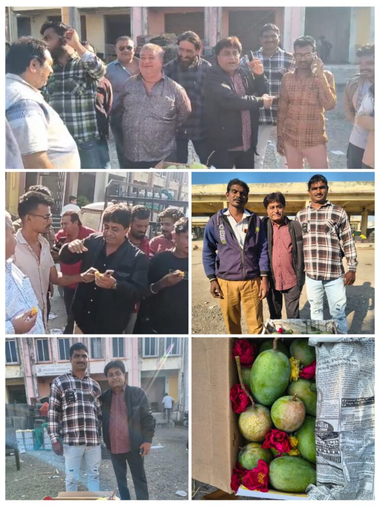 આજે પોરબંદર માર્કેટિંગ યાર્ડમાં ત્રીજી વખત અમરેલીના ખાંભાના કંટારા ગીરથી આવેલ કેસર કેરી અંગે જાણીતા વેપારી