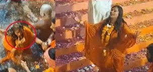 જૂનાગઢમાં મહા શિવરાત્રિના મેળાના છેલ્લા દિવસે રવેડી સમયે ભગવા વસ્ત્રો પહેરી કીર્તિ પટેલ ભવનાથમાં પહોંચી હોવાના દ્રશ્યો સામે આવ્યા છે. જ્યાં તે મૃગીકુંડમાં સાધુઓના શાહી સ્નાનમાં પહોંચતા વિવાદ છેડાયો છે. વાઈરલ વીડિયોમાં જોવા મળે છે કે, કીર્તિ સાધુઓની વચ્ચે જ મૃગીકુંડમાં ડૂબકી લગાવે છે અને ‘હર હર મહાદેવ’નો નાદ કરતી જોવા મળી છે. જોકે, તંત્રને ધ્યાને આવતા તરતજ કીર્તિને ત્યાથી દૂર કરવામાં આવી હતી.