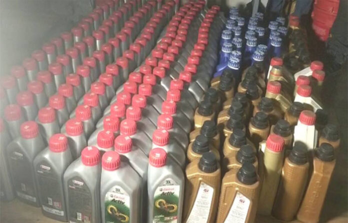 નકલી દુધ, ઘી, પનીર બાદ હવે શહેરમાંથી નકલી એન્જીન ઓઈલ ઝડપાયું છે. શહેરના કુંભારવાડા વિસ્તારમાં લૂઝ ઓઈલમાંથી એન્જીન ઓઈલ બનાવતી ફેક્ટરી લોકલ ક્રાઈમબ્રાંચે ઝડપી પાડી છે. બ્રાંન્ડેડ કંપનીના સ્ટિકર લગાવી નકલી એન્જીન ઓઈલનું વેચાણ કરતા બે શખ્સોને પોલીસે કુલ રૂ.૧.૬૮ લાખના મુદ્દામાલ સાથે ઝડપી લઈ બોરતળાવ પોલીસને સોંપી આગળની કાયદેસરની કાર્યવાહી હાથ ધરી છે.
