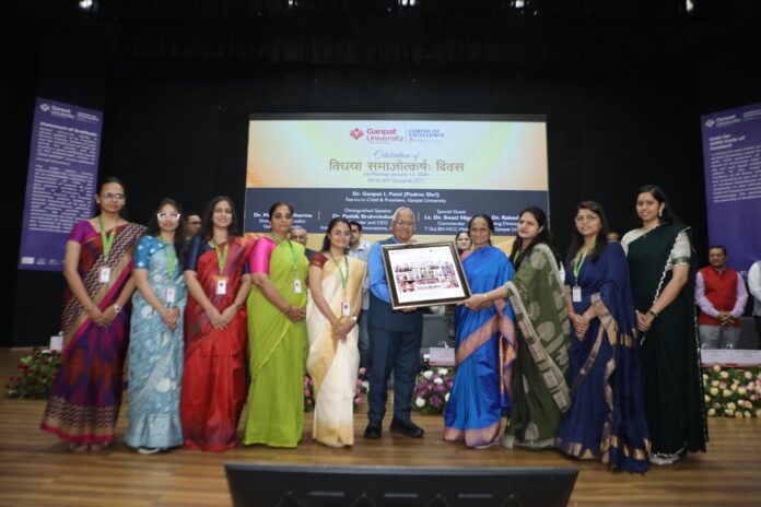 ફાર્મા લીડર અને મોટીવેટર ડૉ. પથિક બ્રહ્મક્ષત્રિય અને એનસીસી ઑફિસર લેફ્ટનન્ટ ડૉ. સ્વાતિ નિગમ વિશેષ મહેમાન તરીકે ખાસ ઉપસ્થિત રહ્યા.ગણપત યુનિવર્સિટીના દાતા અધિષ્ઠાતા અને પ્રમુખ પદ્મશ્રી ગણપતભાઈ પટેલનો જન્મદિવસ આજે ગણપત યુનિવર્સિટીના આંગણે ” વિદ્યાયા સમજોત્કર્ષ : દિવસ ” તરીકે ભારે દબદબા સાથે ઉજવાયો હતો.