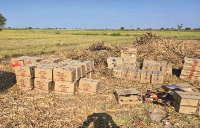 પોલીસે ખેતરમાંથી ભારતીય બનાવટના વિદેશી દારૂની કાચની અને પ્લાસ્ટિકની નાની-મોટી બોટલો તેમજ બિયરના ટીન મળી કુલ ૧૩૪૪ નંગ (કિં.રૂ.૮,૬૩,૧૮૪)જપ્ત કર્યો છે. બુટલેગરોએ ધરપકડથી બચવા માટે ખેતરમાં કડબની આડમાં આ જથ્થો છુપાવ્યો હોવાનું પ્રાથમિક તપાસમાં બહાર આવ્યું છે.