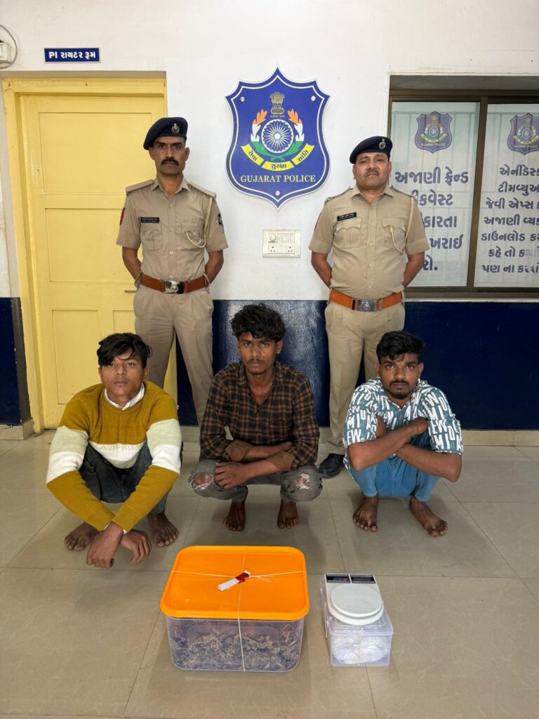 વલસાડ જિલ્લાની ડુંગરા પોલીસે બાતમીના આધારે લવાછા વિસ્તારમાં દરોડો પાડીને ગેરકાયદેસર ગાંજાના મોટા જથ્થા સાથે ત્રણ આરોપીઓ અને એક કાયદાના સંઘર્ષમાં આવેલા બાળકિશોરને ઝડપી પાડ્યા છે. પોલીસે કુલ ₹૧.૨૦ લાખથી વધુનો મુદ્દામાલ જપ્ત કર્યો છે.