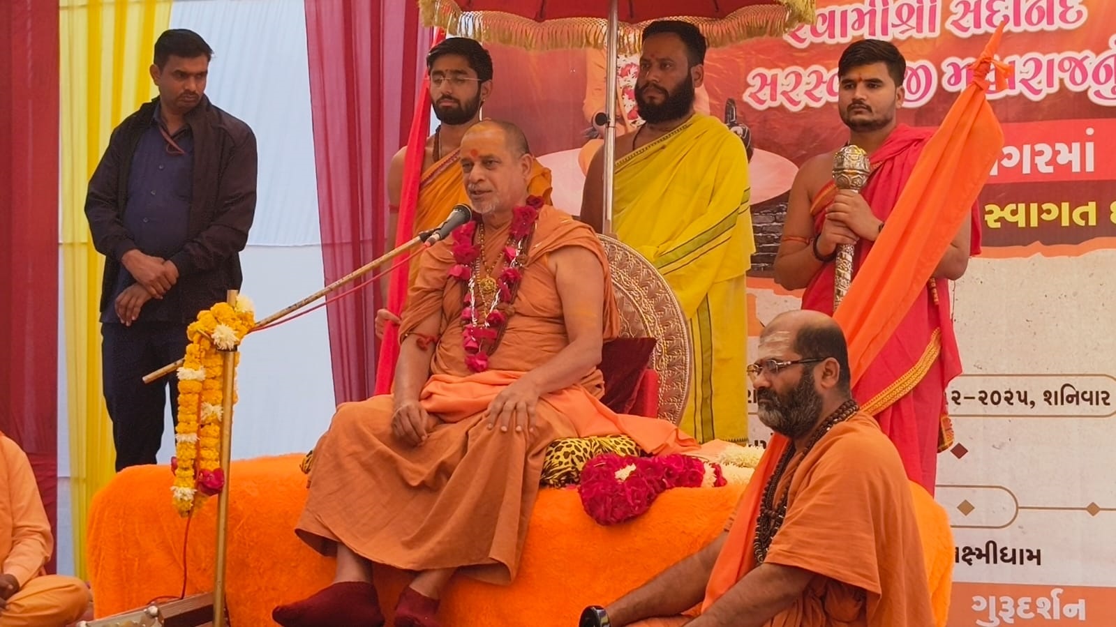 .શોભાયાત્રામાં ભાવિકો દ્વારા તેમની પર પુષ્પાવર્ષા કરીને ભવ્ય સ્વાગત કરવામા આવ્યુ હતુ. મહાલક્ષ્મી મંદિર ખાતે યોજાયેલા આર્શિવચન કાર્યક્રમમા હાજરી આપી હતી. ત્યારબાદ તેઓ મરુડેશ્વર મહાદેવ મંદિર ખાતે તેઓએ મહાદેવના દર્શન કર્યા હતા.