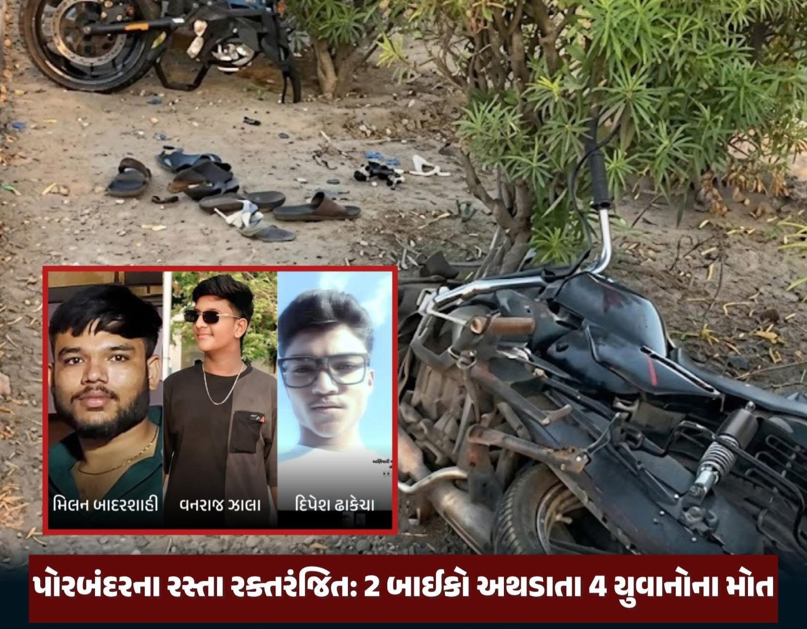 Gujarat : પોરબંદરના રસ્તા રક્તરંજિત: કાળમુખી સોમવારની સવારે બે બાઈકો વચ્ચે પ્રચંડ ટક્કર, 4 આશાસ્પદ યુવાનોના કરુણ મોત