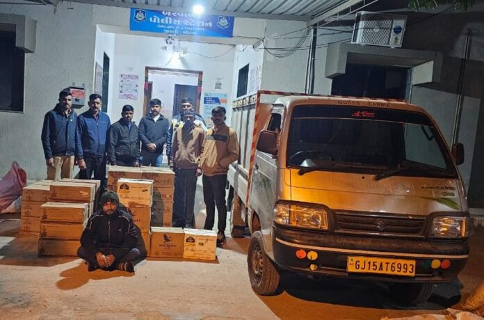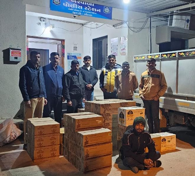 જેમાં બરવાળા પોલીસ સ્ટેશનના PI એન.વી. વસાવા અને તેમનો સ્ટાફ પેટ્રોલિંગમાં હતો ત્યારે પોલીસ કોન્સ્ટેબલ સિદ્ધરાજસિંહ લાલભાને ચોક્કસ બાતમી મળી હતી. બાતમી મુજબ, મારૂતિ સુઝુકી કંપનીની સુપર કેરી ગાડી (રજી. નં. GJ-15-AT-6993)માં ભારતીય બનાવટનો વિદેશી દારૂનો જથ્થો ભરીને ધંધુકા તરફથી બરવાળા તરફ આવી રહી છે જે બાતમીના આધારે બરવાળા ગામે ખોડીયાર મંદિર પાસે વોચ ગોઠવવામાં આવી હતી. પોલીસ દ્વારા બાતમી વાળી ગાડીને અટકાવી તપાસ કરતા તેમાંથી વિવિધ બ્રાન્ડની ભારતીય બનાવટના ઇંગ્લિશ દારૂની કુલ 1596 બોટલો મળી આવી હતી. રૂ.4,27,200 ની કિંમતની 1596 દારૂની બોટલ તેમજ રૂ. 3,00,000 ની કિંમતની મારૂતિ સુઝુકી સુપર કેરી ગાડી અને રૂ. 1,000 નો એક મોબાઈલ ફોન પણ જપ્ત કરવામાં આવ્યો હતો. કુલ રૂ. 7,28,200 નો મુદ્દામાલ કબ્જે કરવામાં આવ્યો છે. આ મામલે એક આરોપીની ધરપકડ કરીને તેની સામે પ્રોહિબિશન એક્ટ હેઠળ કાયદેસરની કાર્યવાહી હાથ ધરવામાં આવી છે…