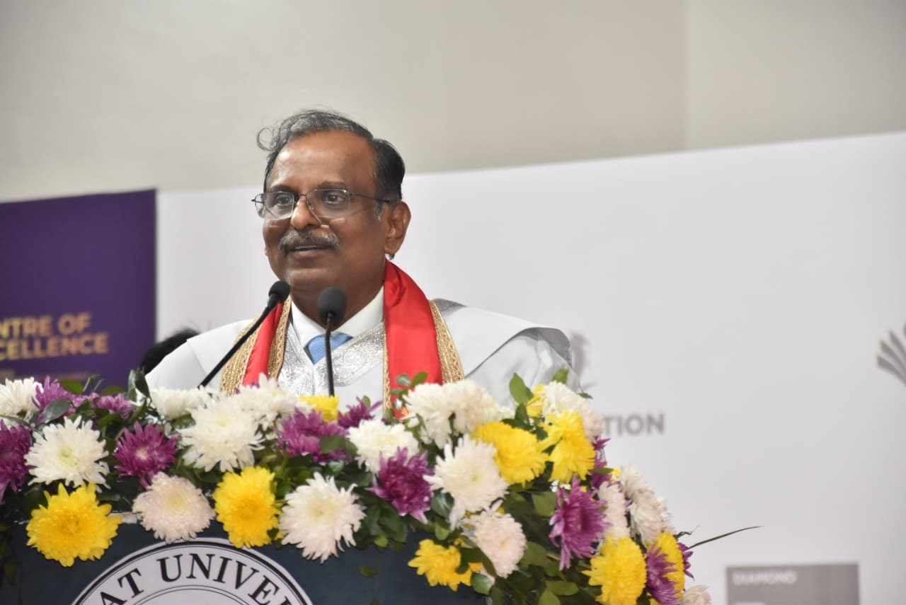 ભારતીય અવકાશ સંશોધન સંસ્થા(ISRO)ના અધ્યક્ષ ડૉ. વી. નારાયણને જણાવ્યું હતું કે,પદવીનું ઋણ અને સમાજ પ્રત્યેનું ઉત્તરદાયિત્વ આજે તમને જે પદવી મળી રહી છે, તેમાં માત્ર તમારી મહેનત નથી પરંતુ તમારા માતા-પિતા, પ્રાથમિક શાળાના શિક્ષકો, યુનિવર્સિટીનો સ્ટાફ અને દેશના કરદાતાઓનો પણ ફાળો છે. દીક્ષાંત સમારોહ એ જીવનના નવા તબક્કામાં પ્રવેશ છે. આ તકે આપણે સંકલ્પ લેવો જોઈએ કે જે સમાજે આપણને ઘડ્યા છે, તે સમાજને આપણે કંઈક પરત કરીએ. ડૉ. નારાયણે સ્વામી વિવેકાનંદના સૂત્ર “ઉઠો, જાગો અને ધ્યેય પ્રાપ્તિ સુધી મંડ્યા રહો” દ્વારા વિદ્યાર્થીઓને પ્રોત્સાહિત કર્યા હતા.