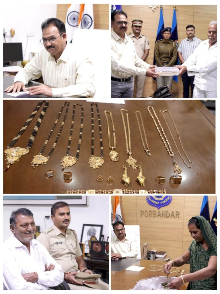 Gujarat : રાણાવાવ વિસ્તારના ખીજદડ ગામે લૂંટમાં ગયેલ ૨૭ તોલા દાગીના એસ.પી.જાડેજાના હસ્તે તેરા તુજકો અર્પણ અંતર્ગત ફરિયાદીને સુપ્રત