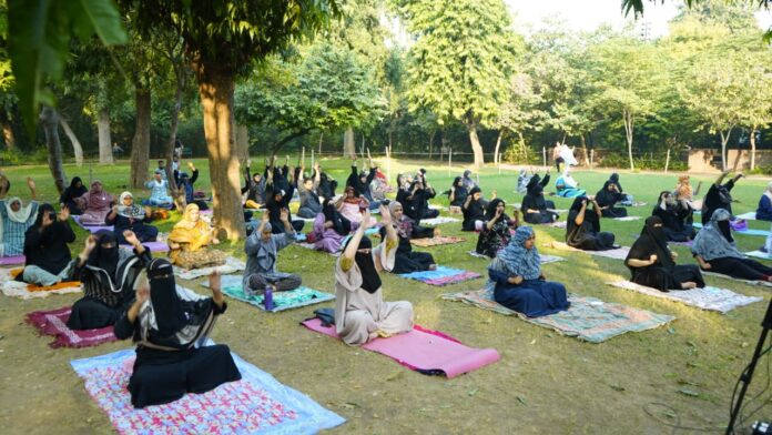 તંદુરસ્ત સ્વાસ્થ્યની પ્રાપ્તિ માટે ધર્મ કે જાતિ કોઈ અવરોધ બનતા નથી. સમગ્ર સૃષ્ટિ એક પરિવાર છે, ‘વસુધૈવ કુટુંબકમ્’ની આ જ ભાવના સાથે અમદાવાદ ખાતે મુસ્લિમ મહિલાઓએ યોગ કેમ્પમાં સહભાગી થઈને વિવિધ યોગાસનો અને પ્રાણાયામમાં ઉત્સાહપૂર્વક ભાગ લીધી હતો. રાજ્યના કોમી એકતાના વારસાને વધુ મજબૂત બનાવતા રાજ્ય યોગ બોર્ડના આ કાર્યક્રમ થકી ‘સ્વસ્થ ગુજરાત–મેદસ્વિતા મુક્ત ગુજરાત’ અભિયાનને એક નવી ઊંચાઈ મળી છે.
