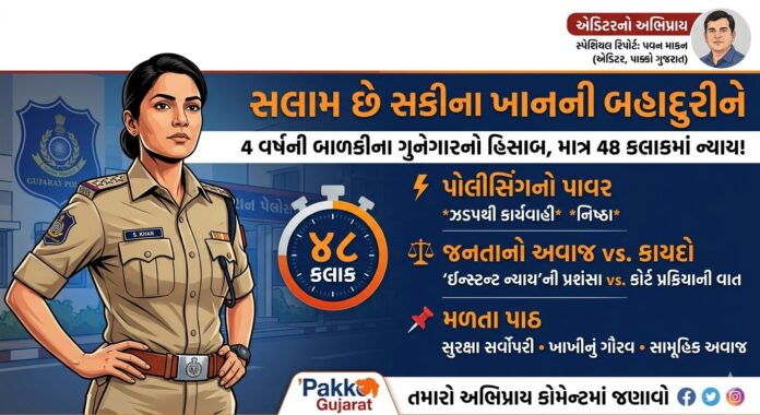 ન્યાય માત્ર કાગળ પર નહીં, પણ મેદાનમાં દેખાવો જોઈએ. સકીના ખાનની આ કાર્યવાહીએ સમગ્ર દેશના પોલીસ તંત્ર માટે એક મજબૂત ઉદાહરણ સેટ કર્યું છે. ‘પાક્કો ગુજરાત’ આવી મહિલા અધિકારીની કર્તવ્યનિષ્ઠાને બિરદાવે છે.