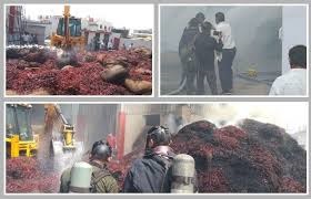 જામનગર નજીક હાપા ઇન્ડસ્ટ્રીયલ એરિયામાં આવેલી મધુસુદન મસાલા નામની ફેક્ટરીમાં રવિવારે અકસ્માતે આગ લાગી હતી, અને આશરે 35 ટન જેટલો મરચાનો જથ્થો સળગી ઉઠ્યો હતો. ફાયર વિભાગની ટુકડીએ ભારે જહેમત લઈને પાણીના ત્રણ ટેન્કરો વડે આગને કાબુમાં લઈ લીધી હતી, જેથી ફેક્ટરીની મશીનરી બચી ગઈ હતી.