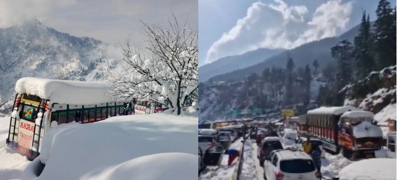 હિમાચલ પ્રદેશના પ્રખ્યાત હિલ સ્ટેશન મનાલીમાં હાલ કુદરતનું અદભુત પણ જોખમી સ્વરૂપ જોવા મળી રહ્યું છે. છેલ્લા કેટલાય સમયથી મનાલી અને આસપાસના વિસ્તારોમાં થઈ રહેલી ભારે બરફવર્ષાને કારણે પ્રવાસન પર મોટી અસર પડી છે. બરફની જાડી પરત જામી જવાને કારણે મુખ્ય હાઈવે બંધ કરવાની ફરજ પડી છે, જેના કારણે પ્રવાસીઓની મુશ્કેલીમાં મોટો વધારો થયો છે.16 કિમી લાંબો ટ્રાફિક જામ સર્જાયો છે.