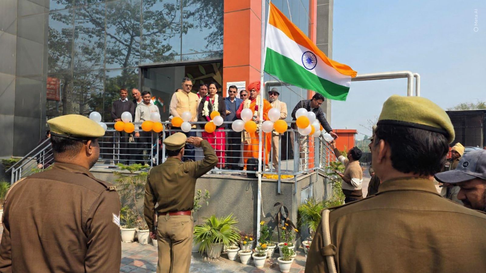 गणतंत्र दिवस के पावन अवसर पर परमपूज्य स्वामी चक्रपाणि जी महाराज द्वारा तिरंगा फहराया गया। तिरंगा फहराए जाने के तुरंत पश्चात राष्ट्रगान एवं “वंदे मातरम्” राष्ट्रगीत का सामूहिक गायन हुआ। उपस्थित सभी लोगों ने तिरंगे को सलामी दी। कार्यक्रम में उपस्थित दिल्ली पुलिस के जवानों ने भी तिरंगे को सलामी दी। इसके उपरांत स्वामी चक्रपाणि जी महाराज ने तिरंगे सहित दिल्ली पुलिस एवं उत्तर प्रदेश पुलिस के निष्ठावान अधिकारियों को सलामी देकर सम्मान व्यक्त किया। इसके बाद परिसर तालियों की गूंज के साथ “भारत माता की जय” के गगनभेदी नारों से गूंज उठा।