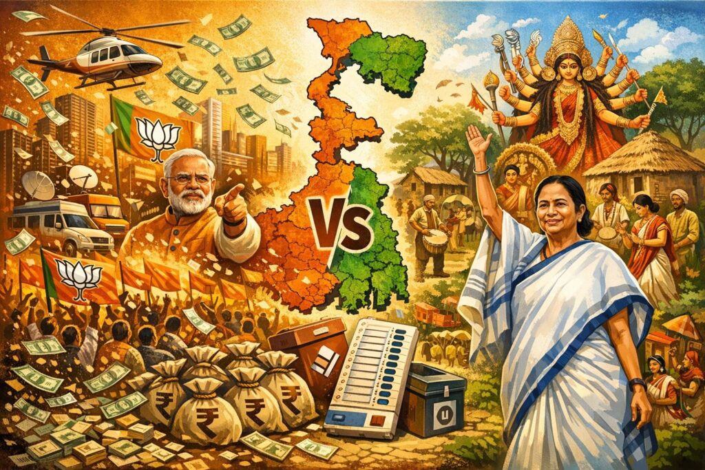 पश्चिम बंगाल की राजनीति हमेशा एक विशेष विशेषता से चिह्नित रही है-न केवल विकास या वादे, बल्कि लोगों की भावनाएं, संस्कृति और पहचान भी उतनी ही महत्वपूर्ण हैं। आगामी चुनावों के संदर्भ में, यह संघर्ष फिर से सामने आया है-एक तरफ भारतीय जनता पार्टी (भाजपा) की ‘धन-शक्ति’ और दूसरी तरफ, ममता बनर्जी का ‘बंगालियाना’।