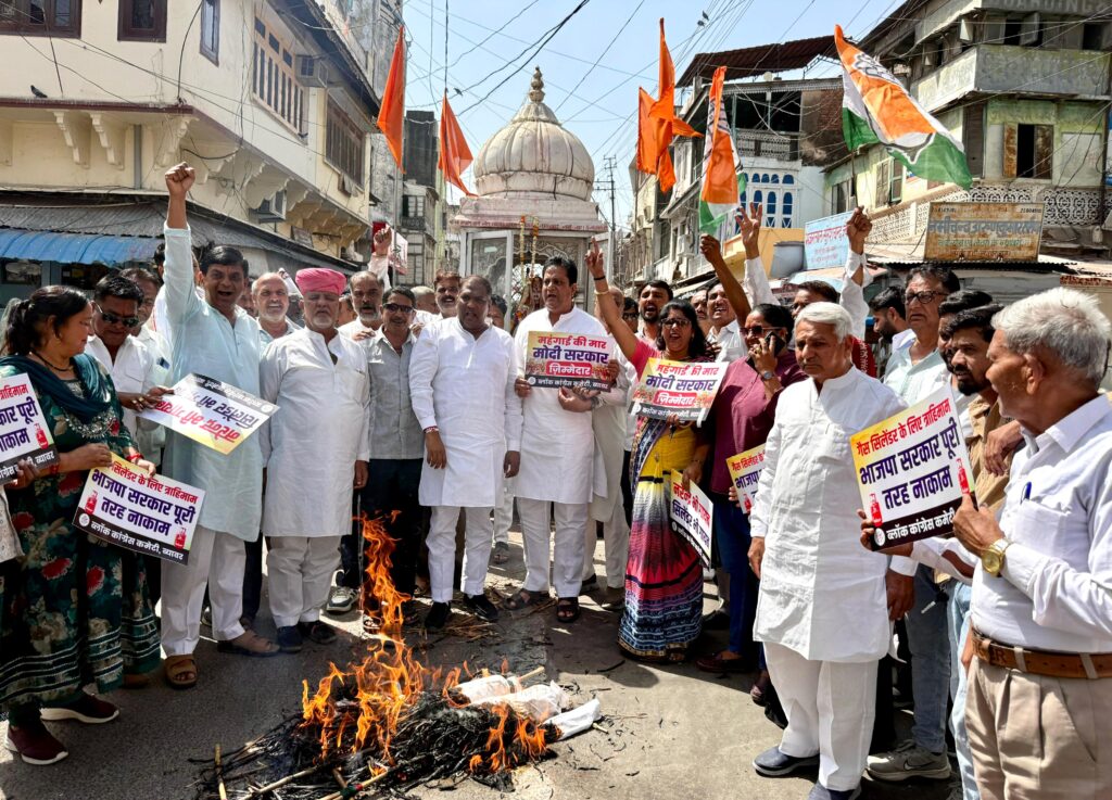 महंगाई, रसोई गैस और ईंधन की बढ़ती कीमतों तथा केंद्र सरकार की कथित जनविरोधी नीतियों के विरोध में कांग्रेस कार्यकर्ताओं ने रविवार को ब्यावर शहर के प्रमुख पाँच बत्ती चौराहे पर जोरदार प्रदर्शन किया। प्रदर्शन के दौरान कांग्रेस कार्यकर्ताओं ने केंद्र सरकार के खिलाफ नारेबाजी करते हुए प्रधानमंत्री नरेंद्र मोदी का पुतला दहन कर विरोध दर्ज कराया।