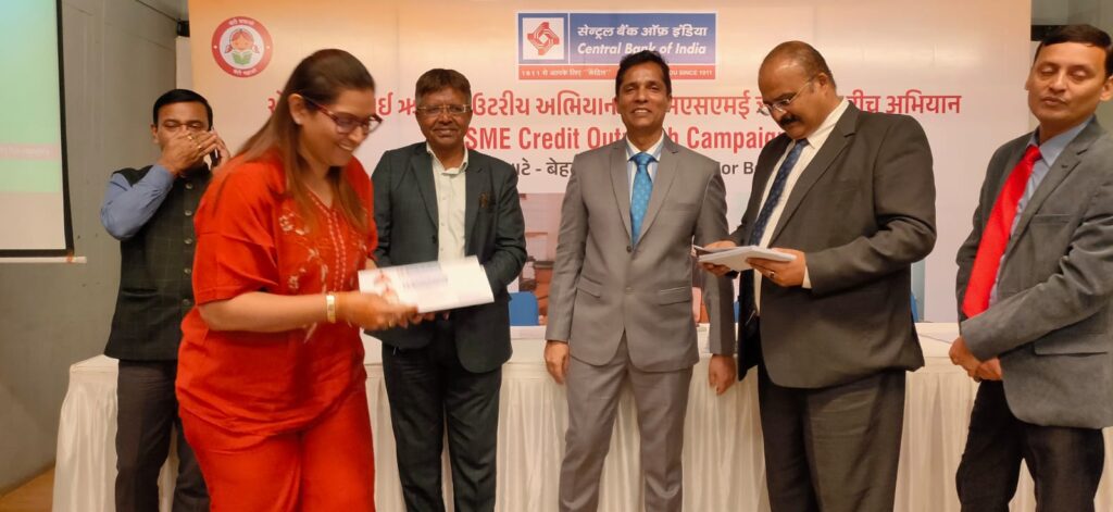 इन ऋण की स्वीकृति में स्वीकृति पत्र लीड जेनरेशन एवं सैद्धांतिक स्वीकृति पत्र शामिल हैं साथ ही महाप्रबंधक श्री सुहेल अहमद जी ने अहमदाबाद की विभिन्न एमएसएमई यूनिटों पर जाकर ग्राहकों से मुलाकात की.लेख है कि सेंट्रल बैंक ऑफ़ इंडिया द्वारा समाज के विभिन्न वर्गों के लिए सूक्ष्म एवं लघु उद्योग संबंधी विविध व्यावसायिक उद्देश्यों हेतु हर प्रकार की योजनाएं लागू की गई है. इस अवसर पर ग्राहकों ने बैंक द्वारा प्रदान की गई सेवाओं पर संतोष व्यक्त किया. इस अवसर पर श्री एमएसएमई डीएफओ कार्यालय से श्री डी. टी .सोलंकी, श्री अपूर्व शाह उपाध्यक्ष चेंबर ऑफ कॉमर्सैं, श्री जयदीप चौधरी साइबर सेंटर ऑफ़ एक्सीलेंस उपस्थित थे. साथ ही इस अवसर पर बैंक द्वारा साइबर धोखाधड़ी और उससे बचने के उपाय, वित्तीय जागरूकता संबंधी अभियान जैसे वीडियो केवाईसी अनक्लेमड डिपॉजिट आदि की जानकारी भी ग्राहकों को प्रदान की गई. इस अवसर पर बैंक की और से अंचल प्रमुख श्री सुनील कुमार सरकार क्षेत्रीय प्रमुख अहमदाबाद श्री गौरव कुमार जैन क्षेत्रीय प्रमुख गांधीनगर श्री चंदन कुमार झा जी उपस्थित थे.