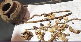 કર્ણાટકના ગડગ જિલ્લામાં એક ઘરના ભોંયરામાં ખોદકામ કરતી વખતે સોનાનો ખજાનો મળી આવ્યો. જિલ્લાના ઐતિહાસિક લક્કુંડી ગામમાં ઘરના બાંધકામ માટે ખોદકામ ચાલી રહ્યું હતું ત્યારે માટી નીચે દટાયેલો સદીઓ જૂનો ખજાનો મળી આવ્યો. સોનાનો હાર અને કાનની બુટ્ટીઓ સહિત આશરે 470 ગ્રામ સોનાના દાગીના મળી આવ્યા.