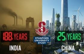 ચીનમાં અનેક વસ્તુઓનું ઉત્પાદન થાય છે જેને તે વિશ્વભરના માર્કેટમાં પહોંચાડી રહ્યું છે. અનેક ઉદ્યોગો અને ફેક્ટરીઓ ધમધમી રહી હોવા છતા ચીન પ્રદૂષણ સામે પગલા લેવામાં ભારત કરતા આગળ છે જે આ સ્ટડીના તારણમાં સામે આવ્યું છે. અમેરિકાના કેલિફોર્નિયામાં આવેલી સ્ટેનફોર્ડ યુનિવર્સિટીના પર્યાવરણ નિષ્ણાતો દ્વારા એક તારણ બહાર પડાયું છે. જેમાં જણાવાયું છે કે ભારતને 100 ટકા સ્વચ્છ એનર્જી મેળવવામાં હજુ 188 વર્ષ લાગી શકે છે.