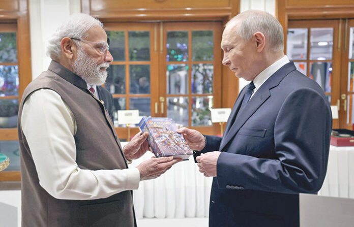 ભારત અને રશિયાએ અમેરિકન પ્રમુખ ડોનાલ્ડ ટ્રમ્પના દંડ સ્વરૂપે લગાવેલા ટેરિફ અને પશ્ચિમી દેશોના પ્રતિબંધોથી સર્જાયેલી સ્થિતિનો સામનો કરવા શુક્રવારે બંને દેશ વચ્ચે આર્થિક અને વ્યાપારિક ભાગીદારી મજબૂત કરવા પંચવર્ષીય યોજના પર સહમતી વ્યક્ત કરી છે. આ યોજના હેઠળ બંને દેશોનો દ્વિપક્ષીય વેપાર હાલના વાર્ષિક ૬૪ અબજ ડોલરથી વધારીને વાર્ષિક ૧૦૦ અબજ ડોલર સુધી લઈ જવાનું લક્ષ્ય છે. પ્રમુખ પુતિનના આ પ્રવાસમાં ભારત-રશિયાએ કુલ ૧૯ કરાર કર્યા છે. વધુમાં રશિયા સાથે સંબંધો તોડવા ભારત પર પ્રમુખ ટ્રમ્પના ભારે દબાણ છતાં ભારત-રશિયાની શિખર મંત્રણા પછી વડાપ્રધાન મોદીએ જણાવ્યું હતું કે, વૈશ્વિક સ્તરે અનેક ઉથલ-પાથલ અને ભૂ-રાજકીય તણાવો વચ્ચે પણ આઠ દાયકાથી વધુ જૂની ભારત-રશિયાની મિત્રતા ધૂ્રવ તારા સમાન અડગ અને અચળ છે. રશિયન પ્રમુખ વ્લાદિમિર પુતિને કહ્યું કે, અમેરિકન પ્રમુખ ટ્રમ્પના દબાણ છતાં રશિયા ભારતને ફ્યુઅલનો પૂરવઠો અવિરત ચાલુ રાખશે.યુક્રેન યુદ્ધ શરૂ થયા પછી પહેલી વખત ભારતના બે દિવસના પ્રવાસે આવેલા રશિયાના પ્રમુખ અને વડાપ્રધાન મોદી વચ્ચે શુક્રવારે હૈદરાબાદ હાઉસ ખાતે ૨૩મી શિખર મંત્રણા થઈ હતી. આ પહેલાં રાષ્ટ્રપતિ દ્રૌપદી મુર્મૂ અને વડાપ્રદાન મોદીએ રાષ્ટ્રપતિ ભવનમાં પ્રમુખ પુતિનનું ઉષ્માભર્યું સ્વાગત કર્યું હતું અને તેમને ગાર્ડ ઓફ ઓનર અપાયું હતું. ત્યાર પછી પ્રમુખ પુતિન રાજઘાટ ખાતે રાષ્ટ્રપિતા મહાત્મા ગાંધીને શ્રદ્ધાંજલિ આપી હતી.
