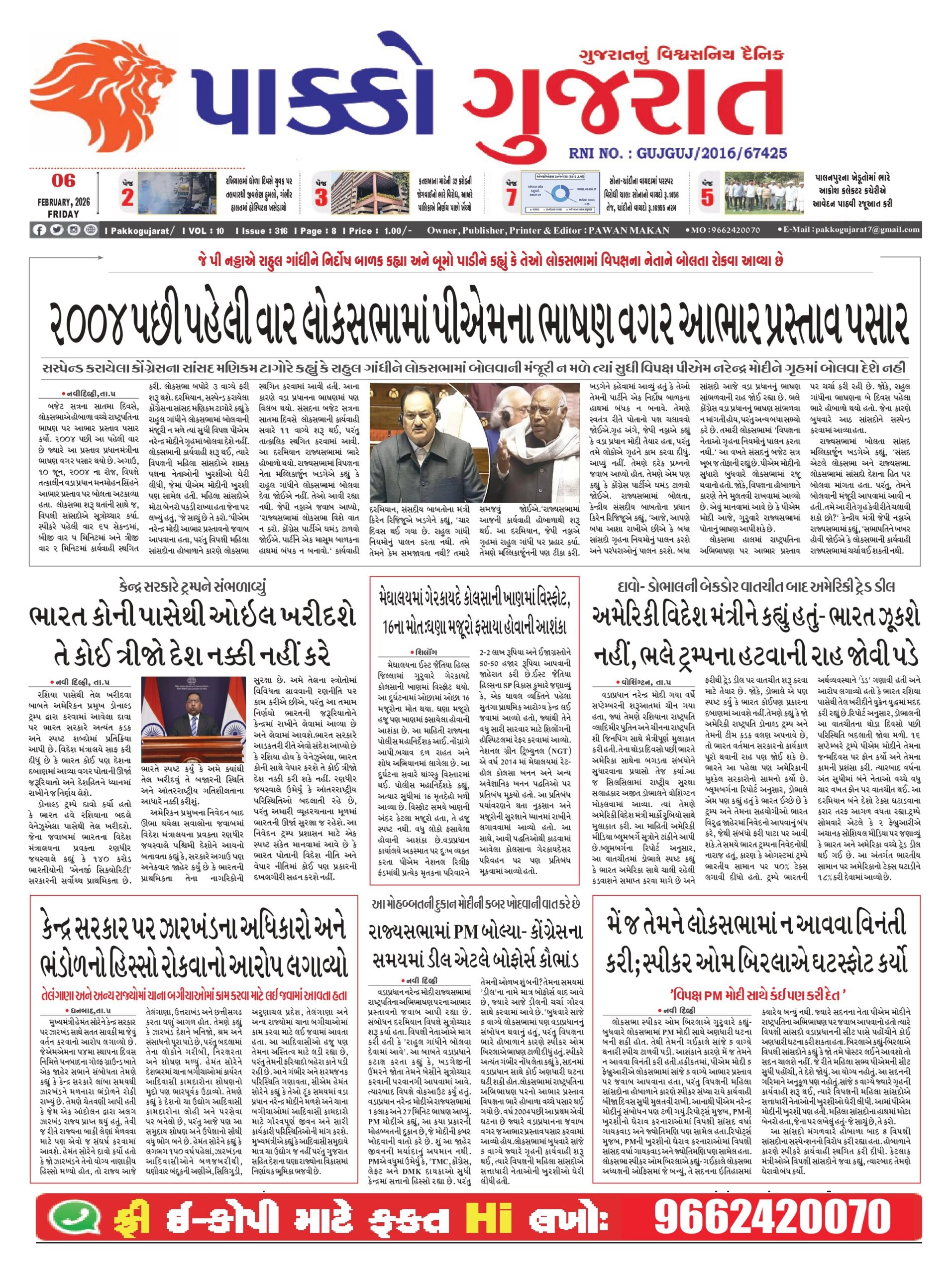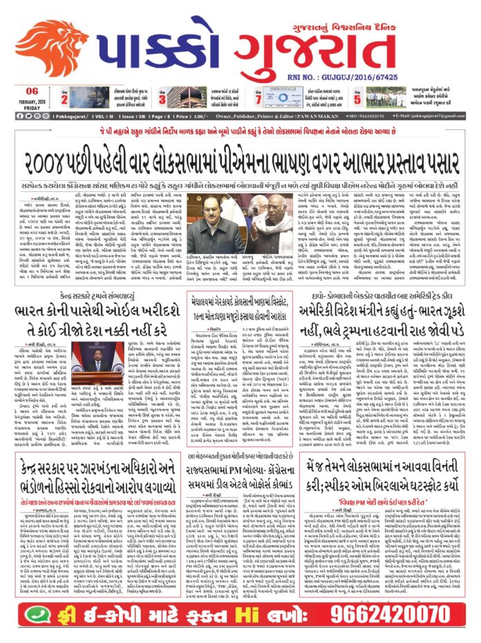 HomeepaperPAKKO GUJARAT : 06-01-2026 PAKKO GUJARAT : 06-01-2026 By pakkogujarat February 6, 2026 0 767 Share FacebookTwitterPinterestWhatsApp PAKKO_GUJARAT_06-02-2026Download Share FacebookTwitterPinterestWhatsApp Previous articleRajkot : જેતપુર તત્કાલ ચોકડી ગ્રીન સીટી યશોદા નગર ખાતે સલોના વલ્ડ ટ્રેડલીંક નામની પેઢીમાં ચોરી કરનાર શખ્સ ઝડપાયોNext articleNational : मोदरान स्टेशन पर रेल ठहराव को लेकर भाजपा जिलाध्यक्ष ने लिखा पत्र pakkogujarathttps://pakkogujarat.com/ RELATED ARTICLES epaper PAKKO GUJARAT : 02-03-2026 March 2, 2026 epaper PAKKO GUJARAT : 01-03-2026 March 1, 2026 epaper PAKKO GUJARAT : 28-02-2026 February 28, 2026 LEAVE A REPLY Cancel reply Comment: Please enter your comment! Name:* Please enter your name here Email:* You have entered an incorrect email address! Please enter your email address here Website: Save my name, email, and website in this browser for the next time I comment. - Advertisment - Most Popular National : ખામેનેઈના મોત મુદ્દે જમ્મુ-કાશ્મીરમાં હિંસક દેખાવો, ટોળાને વિખેરવા લાઠીચાર્જ, ટિયર ગેસના શેલ છોડ્યા March 2, 2026 Delhi : ઈરાન-અમેરિકા યુદ્ધની અસરને પગલે અમેરિકન દૂતાવાસ ખાતે સુરક્ષા વધારી દેવાઈ, ચુસ્ત બંદોબસ્ત ગોઠવાયો March 2, 2026 National : 11 घंटे बंद रहेगा राम मंदिर, जानें कब खुलेगा राम लला का द्वार? March 2, 2026 Gujarat : માઉન્ટ આબુ ખાતે રાજ્ય સરકાર યોજશે નિ:શુલ્ક પર્વતારોહણ તાલીમ, રહેવા-જમવા સહિતની સુવિધા ફ્રી March 2, 2026 Load more Recent Comments