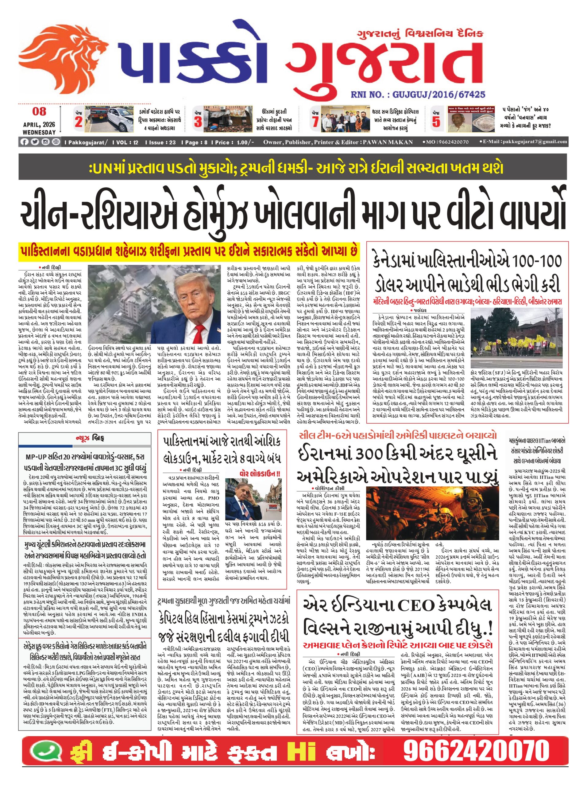 HomeepaperPAKKO GUJARAT : 08-04-2026 PAKKO GUJARAT : 08-04-2026 By pakkogujarat April 8, 2026 0 1162 Share FacebookXPinterestWhatsApp PAKKO_GUJARAT_08-04-2026Download Share FacebookXPinterestWhatsApp Previous articleRashi : 08 એપ્રિલ 2026નું રાશિ ભવિષ્યNext articleArticle : ડિપ્રેશનથી ડિસિઝન સુધી: જ્યારે શ્રી કૃષ્ણ બન્યા વિશ્વના પ્રથમ કાઉન્સેલર! pakkogujarathttps://pakkogujarat.com/ RELATED ARTICLES epaper PAKKO GUJARAT : 07-04-2026 April 7, 2026 epaper PAKKO GUJARAT : 06-04-2026 April 6, 2026 epaper PAKKO GUJARAT : 05-04-2026 April 5, 2026 LEAVE A REPLY Cancel reply Comment: Please enter your comment! Name:* Please enter your name here Email:* You have entered an incorrect email address! Please enter your email address here Website: Save my name, email, and website in this browser for the next time I comment. - Advertisment - Most Popular Entertainment : TMKOCના ટપ્પુની ટીવી પર થશે વાપસી, રાજ અનડકટે આ પોપ્યુલર એક્ટરને કર્યો રિપ્લેસ! April 8, 2026 National : આસારામના પુત્ર નારાયણ સાંઈના પત્ની જાનકી દેવી સાથે છૂટાછેડા, આટલા કરોડ ચૂકવવું પડશે ભરણપોષણ April 8, 2026 Surat : સચિન વિસ્તારમાંથી બે ઠગબાજો ઝડપાયા, 3,700થી વધુ લોકો સાથે લાખોની છેતરપિંડીનો પર્દાફાશ April 8, 2026 Vadodara : મહિલા ગ્રુપની પોસ્ટ પર રૂપિયાના ભાવ લખી કોમેન્ટ કરનાર યુવકને પાઠ ભણાવવા પોલીસની મદદ લીધી April 8, 2026 Load more Recent Comments