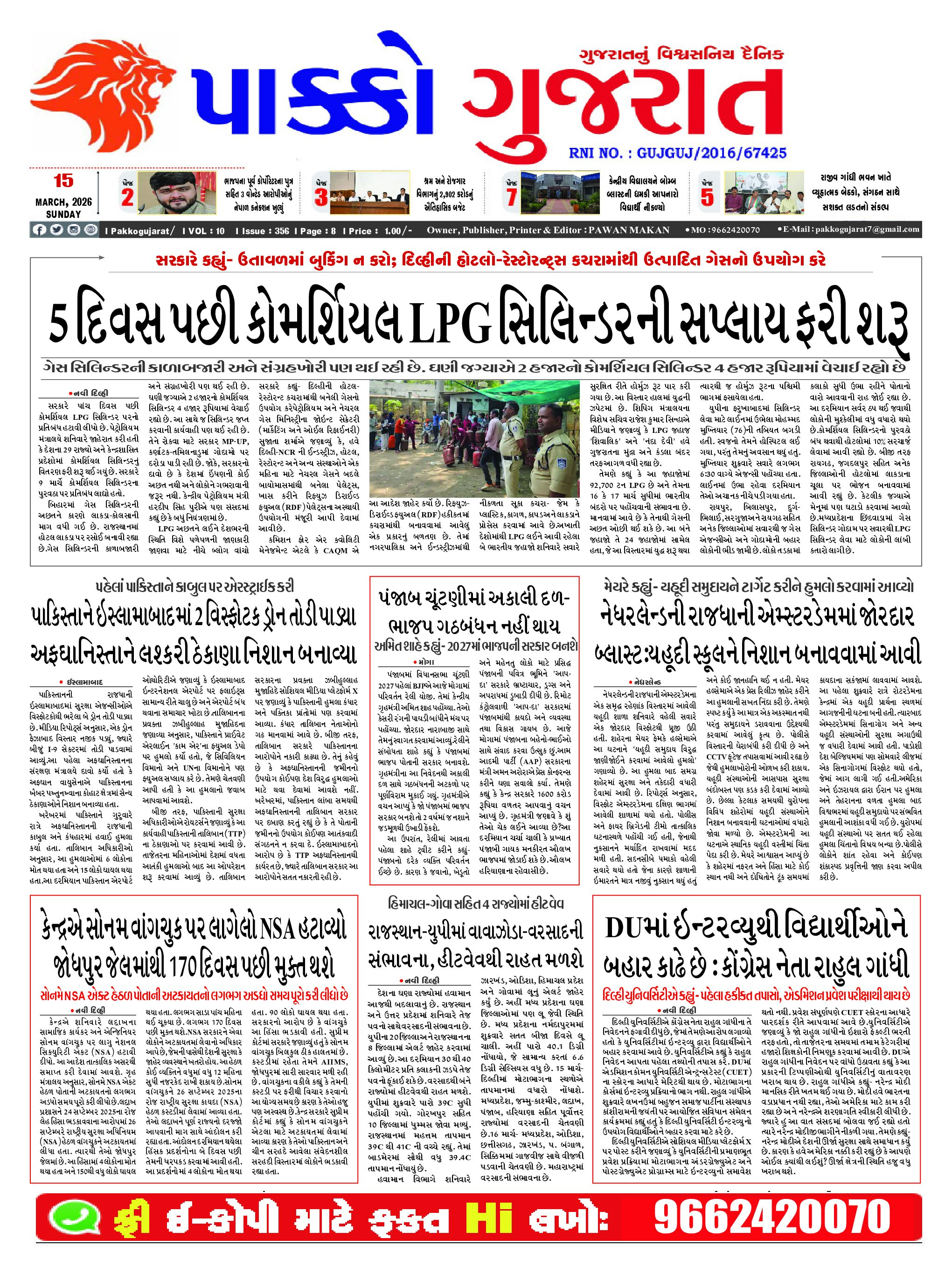 HomeepaperPAKKO GUJARAT : 15-03-2026 PAKKO GUJARAT : 15-03-2026 By pakkogujarat March 15, 2026 0 990 Share FacebookXPinterestWhatsApp PAKKO_GUJARAT_15-03-2026Download Share FacebookXPinterestWhatsApp Previous articleGujarat : મુખ્યમંત્રી શ્રી ભૂપેન્દ્રભાઈ પટેલનો ગૌવંશના હિતમાં મહત્ત્વપૂર્ણ નિર્ણયNext articleNational : विश्व में माँ से बढ़कर कोई शब्द नहीं, माँ ने बेटे के हाथ दीक्षा लेकर इसे सार्थक किया : हार्दिक हुंडिया pakkogujarathttps://pakkogujarat.com/ RELATED ARTICLES epaper PAKKO GUJARAT : 16-04-2026 April 16, 2026 epaper PAKKO GUJARAT : 13-04-2026 April 15, 2026 epaper PAKKO GUJARAT : 13-04-2026 April 13, 2026 LEAVE A REPLY Cancel reply Comment: Please enter your comment! Name:* Please enter your name here Email:* You have entered an incorrect email address! Please enter your email address here Website: Save my name, email, and website in this browser for the next time I comment. - Advertisment - Most Popular Delhi : એરપોર્ટ પર મોટી દુર્ઘટના ટળી, સ્પાઈસ જેટ અને અકાસા એરના વિંગ્સ અથડાયા April 16, 2026 Entertainment : જાણીતા બોલિવૂડ સિંગરે ગુપચુપ કરી લીધા લગ્ન? બાળપણની પ્રેમિકા સાથે પ્રાઈવેટ સેરેમનીમાં લીધા સાત ફેરા April 16, 2026 Sports : આજે મુંબઈ ઈન્ડિયન્સનો મુકાબલો પંજાબ કિંગ્સ સામે થશે, બંને ટીમોનો એકબીજા સાથેનો રેકોર્ડ બરાબરી પર રહેશે. April 16, 2026 World : તુર્કીયેમાં 13 વર્ષના બાળકે સ્કૂલમાં અંધાધૂંધ ફાયરિંગ કર્યું, એક શિક્ષક સહિત 9 વિદ્યાર્થીઓના મોત, હુમલાખોરે પોતાને પણ ગોળી મારી April 16, 2026 Load more Recent Comments