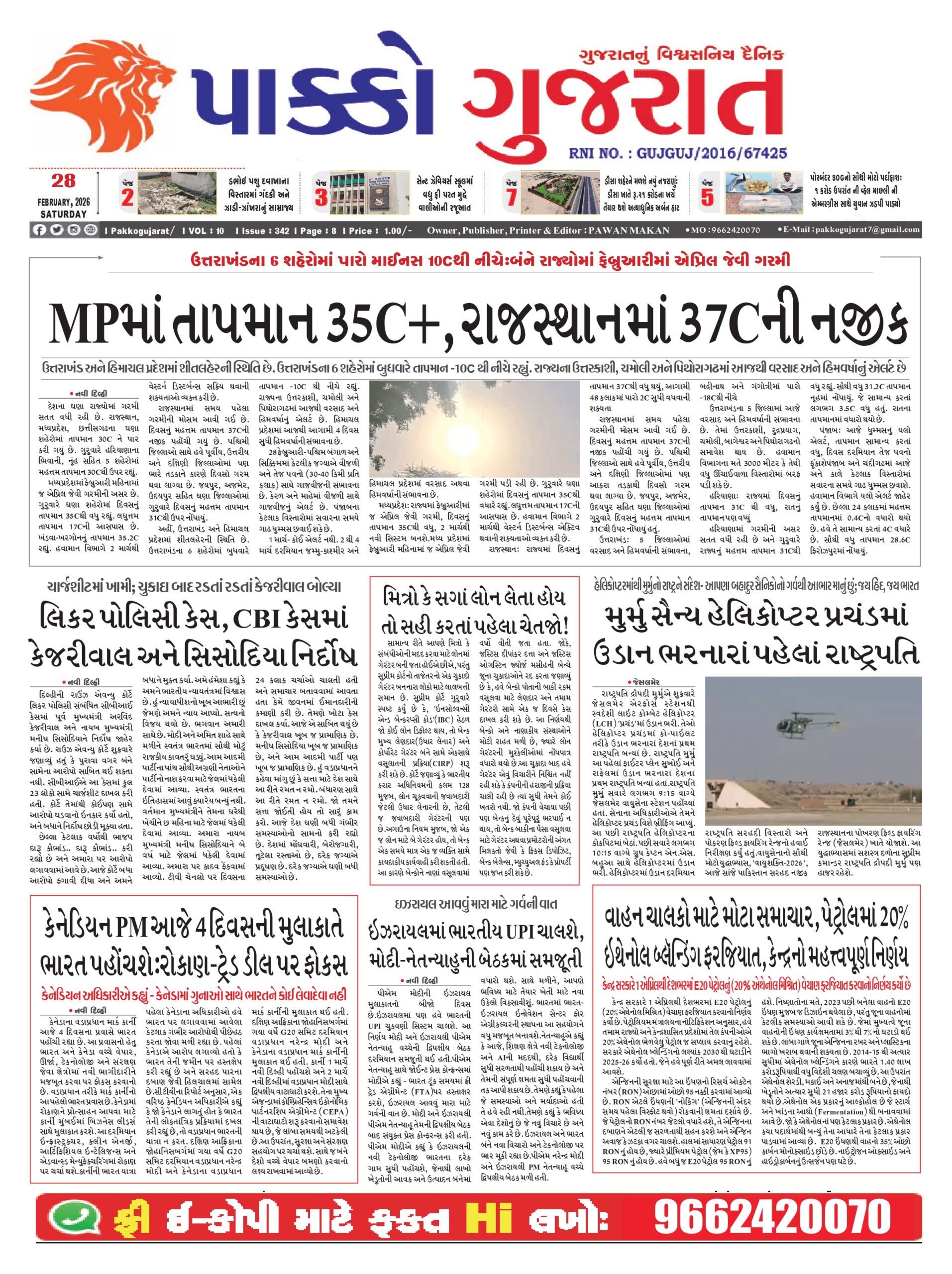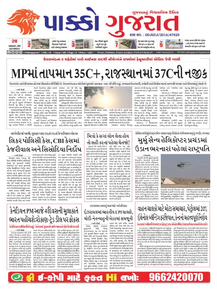 HomeepaperPAKKO GUJARAT : 28-02-2026 PAKKO GUJARAT : 28-02-2026 By pakkogujarat February 28, 2026 0 867 Share FacebookTwitterPinterestWhatsApp PAKKO_GUJARAT_28-02-2026Download Share FacebookTwitterPinterestWhatsApp Previous articleRashi : 28 ફેબ્રુઆરી 2026નું રાશિ ભવિષ્યNext articleGujarat : રાજકોટ રૂરલ LCBએ ખીરસરા ગામની દિવસની ઘરફોડ ચોરીનો ભેદ ઉકેલ્યો: પિતા-પુત્રની જોડી મુદ્દામાલ સાથે ઝડપાઈ pakkogujarathttps://pakkogujarat.com/ RELATED ARTICLES epaper PAKKO GUJARAT : 02-03-2026 March 2, 2026 epaper PAKKO GUJARAT : 01-03-2026 March 1, 2026 epaper PAKKO GUJARAT : 26-02-2026 February 26, 2026 LEAVE A REPLY Cancel reply Comment: Please enter your comment! Name:* Please enter your name here Email:* You have entered an incorrect email address! Please enter your email address here Website: Save my name, email, and website in this browser for the next time I comment. - Advertisment - Most Popular Entertainment : કિયારા અડવાણી અને યશની જોડીનો જાદુ! ટૉક્સિકના પહેલા ગીતે ઇન્ટરનેટ પર મચાવ્યો ખળભળાટ! March 2, 2026 Lifestyle : હોળી પર આંખોને નુકસાન પહોંચાડી શકે રંગ, આવી રીતે રાખો સંભાળ March 2, 2026 Maharashtra : 13 વર્ષના માસૂમે ફાંસો ખાધો, સ્કૂલ પ્રિન્સિપાલે ફરિયાદ કરતાં માતાએ ઠપકો આપ્યો હતો March 2, 2026 Home Tips : શિયાળા બાદ રજાઈ સ્વચ્છ રાખવાની સરળ ટીપ્સ, આખું વર્ષ કબાટમાં મૂકી શકશો March 2, 2026 Load more Recent Comments