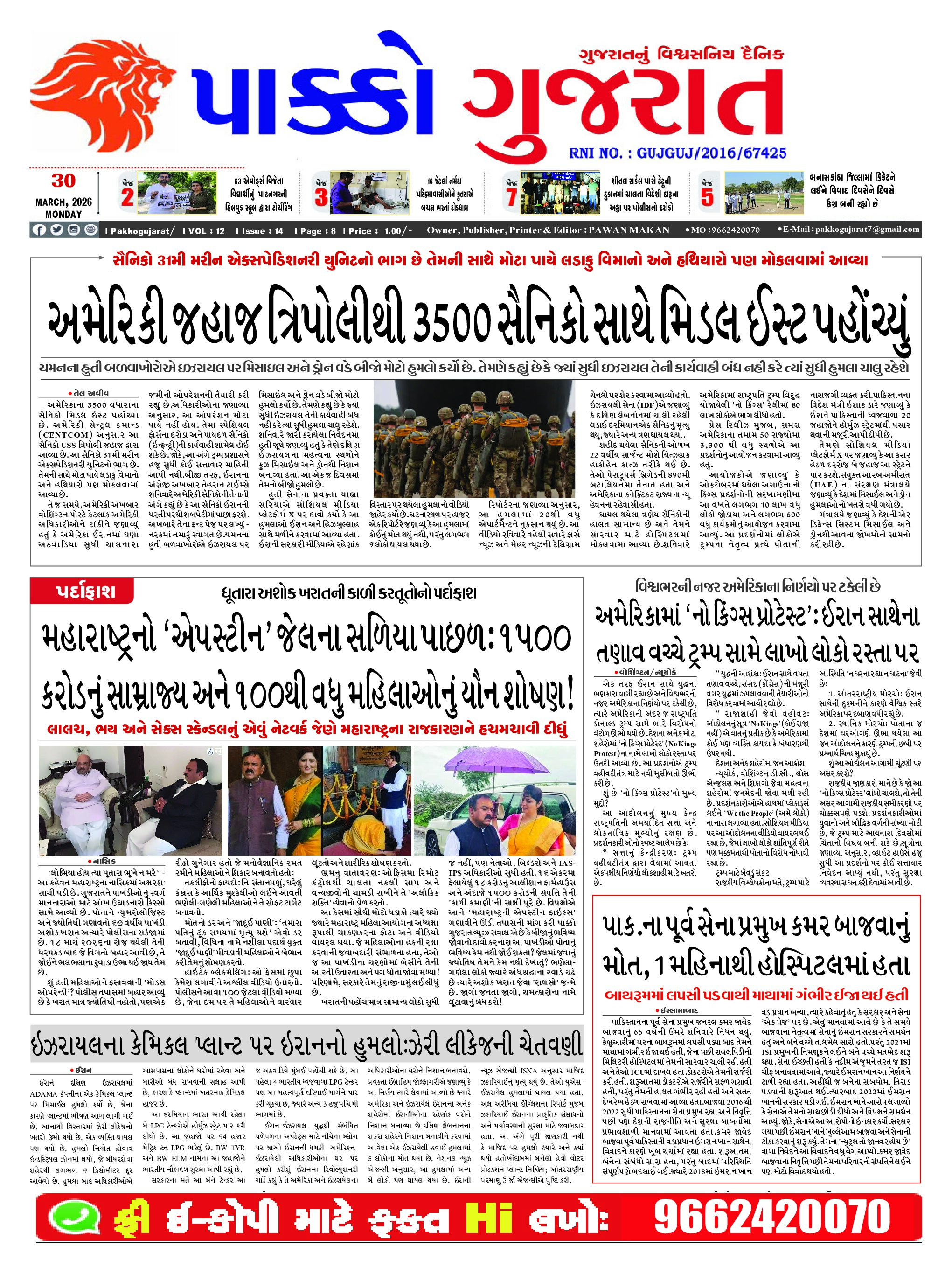 HomeepaperPAKKO GUJARAT : 30-03-2026 PAKKO GUJARAT : 30-03-2026 By pakkogujarat March 30, 2026 0 1083 Share FacebookXPinterestWhatsApp PAKKO_GUJARAT_30-03-2026Download Share FacebookXPinterestWhatsApp Previous articleRashifal : આજ ના રાશિફળ…Next articleGujarat : ભરૂચ LCB એ PGમાં મિત્રતા કેળવી મોબાઈલ ચોરી અને ઓનલાઈન લોન લેતા ભેજાબાજને મોરબીથી ઝડપ્યો pakkogujarathttps://pakkogujarat.com/ RELATED ARTICLES epaper PAKKO GUJARAT : 01-04-2026 April 1, 2026 epaper PAKKO GUJARAT : 31-03-2026 March 31, 2026 epaper PAKKO GUJARAT : 29-03-2026 March 29, 2026 LEAVE A REPLY Cancel reply Comment: Please enter your comment! Name:* Please enter your name here Email:* You have entered an incorrect email address! Please enter your email address here Website: Save my name, email, and website in this browser for the next time I comment. - Advertisment - Most Popular Article : જે તમને નફરત કરે છે તે તમારો સૌથી મોટો “ફેન” છે કેમ કે એ તમારી સૌથી વધારે ઇર્ષ્યા કરે છે. April 1, 2026 Article : સાવધાન! ફેસબુકનો પ્રેમ ચઢ્યો ફેંકે: સોશિયલ મીડિયાના ‘માયાજાળ’માં ફસાયું પ્રેમી પંખીડું, અંજામ આવ્યો ચોંકાવનારો April 1, 2026 National : હોટલના બિલમાં ‘ગેસ ચાર્જ’ માંગે તો ભૂલથી પણ ન આપતા, આ રીતે કરો ઓનલાઈન ફરિયાદ April 1, 2026 Ahmedabad : સિંધુ ભવન રોડ પર સિટી સ્ક્વેર માટે ટેન્ડર: 50 માળ ઊંચા ટાવર પર સ્કાય વોક અને રેસ્ટોરન્ટ બનશે April 1, 2026 Load more Recent Comments