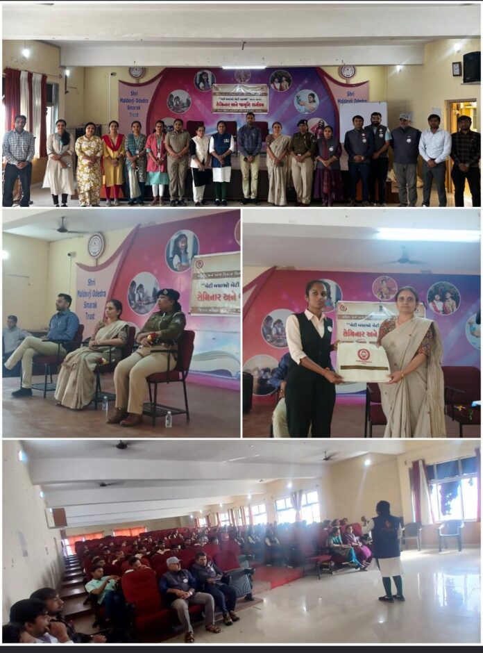 પોરબંદરની ડૉ. વી. આર. ગોઢાણીયા કોલેજ ખાતે જિલ્લા મહિલા અને બાળ અધિકારીની કચેરી દ્વારા મહિલા સશક્તિકરણ અને સરકારી યોજનાઓના પ્રચાર-પ્રસાર માટે વિશેષ જાગૃતિ સેમિનાર યોજાયો હતો.જિલ્લા મહિલા અને બાળ અધિકારી હંસાબેન ટાઢાણીના અધ્યક્ષ સ્થાને યોજાયેલા આ સેમિનારનો મુખ્ય હેતુ કોલેજના વિદ્યાર્થીઓને રાજ્ય સરકારની વિવિધ મહિલા કલ્યાણકારી અને સશક્તિકરણ યોજનાઓથી માહિતગાર કરવાનો હતો, જેથી તેઓ સમાજમાં જાગૃતિ ફેલાવવામાં સક્રિય સહભાગી બની શકે. પ્રસંગે હંસાબેન ટાઢાણીએ વિદ્યાર્થીઓને ઉજ્જવળ ભવિષ્ય માટે પ્રેરણા આપી અને વિભાગની યોજનાઓ અંગે વિગતવાર માહિતી આપી હતી.