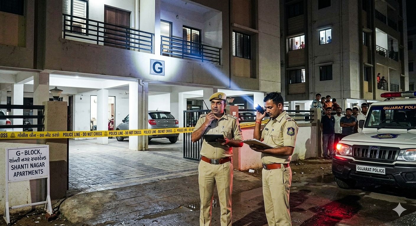 शहर के पॉश इलाके में स्थित एक फ्लैट में बीती रात उस समय अफरा-तफरी मच गई, जब एक पुलिस उपनिरीक्षक (PSI) की सर्विस रिवॉल्वर से अचानक फायरिंग हो गई। इस घटना में पीएसआई एन.के. पंड्या और उनके साथ मौजूद एक महिला मित्र दोनों गंभीर रूप से घायल हो गए हैं।