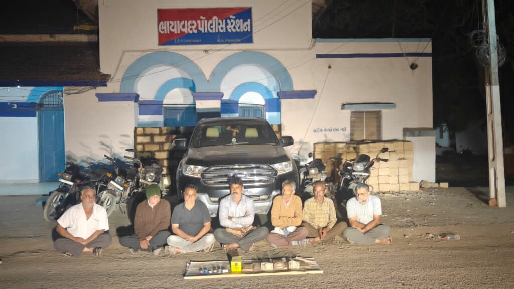 ​રાજકોટ ગ્રામ્ય પોલીસ અધિક્ષકની હદમાં આવતા ભાયાવદર પોલીસ મથક વિસ્તારના ખાખી-જાળિયા ગામે સ્ટેટ મોનિટરિંગ સેલ (SMC) એ મધરાત્રે દરોડો પાડી મોટા પાયે ચાલતા જુગારનો પર્દાફાશ કર્યો છે. આ કાર્યવાહીમાં પોલીસે લાખોની રોકડ અને વાહનો સહિત કુલ ₹24.59 લાખથી વધુનો મુદ્દામાલ જપ્ત કરી કાયદેસરની કાર્યવાહી હાથ ધરી છે.