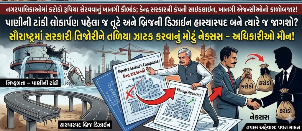 જ્યારે ભ્રષ્ટાચારની વાત આવે ત્યારે ઘણીવાર નજર સામે તૂટેલા રસ્તા કે નબળા બાંધકામ આવે છે, પરંતુ ‘પાક્કો ગુજરાત’ આજે જે ઇન્વેસ્ટિગેશન લઈને આવ્યું છે તે સાંભળીને તમારા પગ નીચેથી જમીન સરકી જશે. નગરપાલિકાઓના કરોડો રૂપિયાના પ્રોજેક્ટ્સમાં કેન્દ્ર સરકારની પ્રતિષ્ઠિત કંપનીઓને સાઇડલાઇન કરીને ખાનગી એજન્સીઓને ‘ઘી-કેળા’ કરાવવાનું એક મોટું કૌભાંડ સૌરાષ્ટ્રમાં ધમધમી રહ્યું છે.