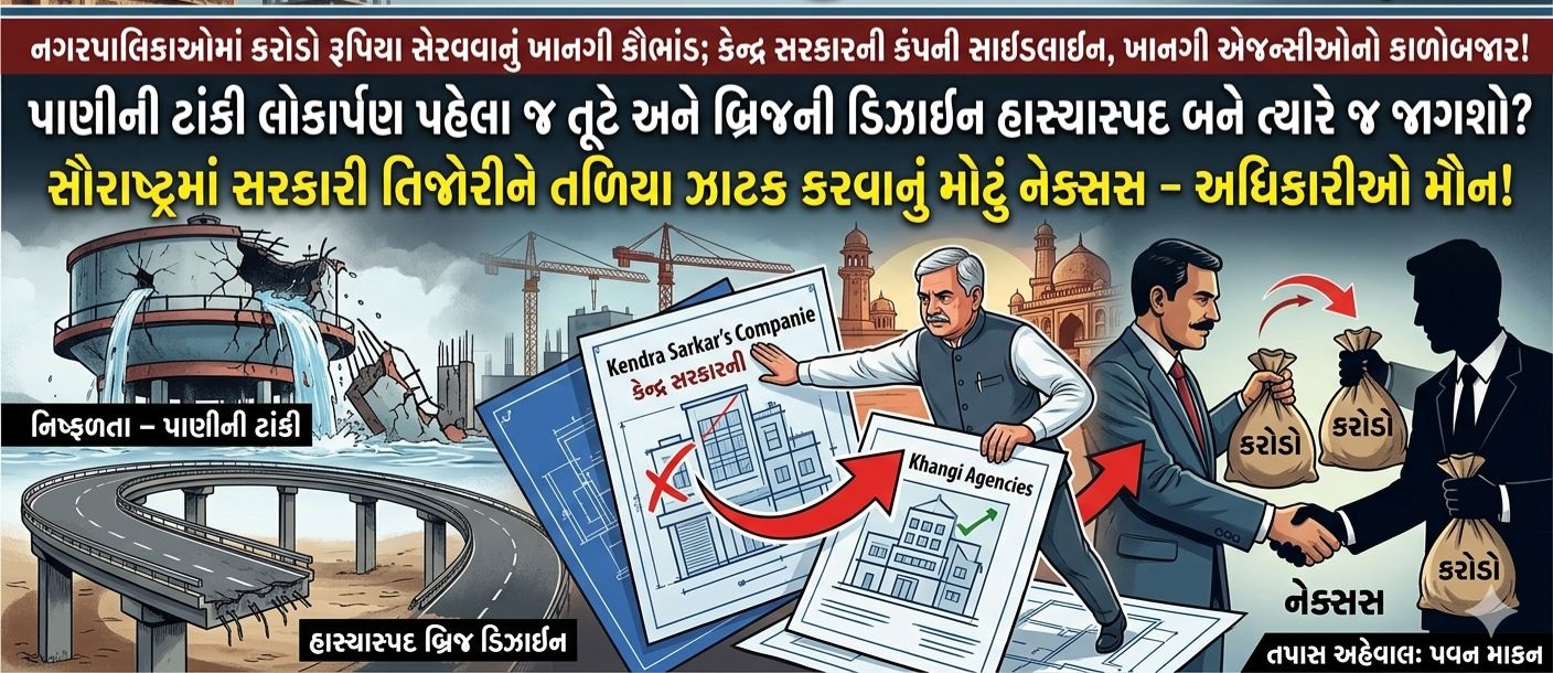 સોશિયલ મીડિયા પર જ્યારે કોઈ બ્રિજની વિચિત્ર ડિઝાઇનના વીડિયો વાયરલ થાય કે નવી બનેલી પાણીની ટાંકી ઉપયોગમાં લેવાય તે પહેલા જ કકડભૂસ થઈ જાય, ત્યારે જ જનતાને ખબર પડે છે કે કામમાં લોલમલોલ ચાલી રહી છે. પણ આ તો માત્ર હિમશિલાની ટોચ છે! અંદરખાને તો એન્જિનિયરિંગ અને કન્સલ્ટન્સીના નામે કરોડો રૂપિયા ખાનગી મળતિયા એજન્સીઓના ખિસ્સામાં સેરવી દેવામાં આવ્યા છે.
