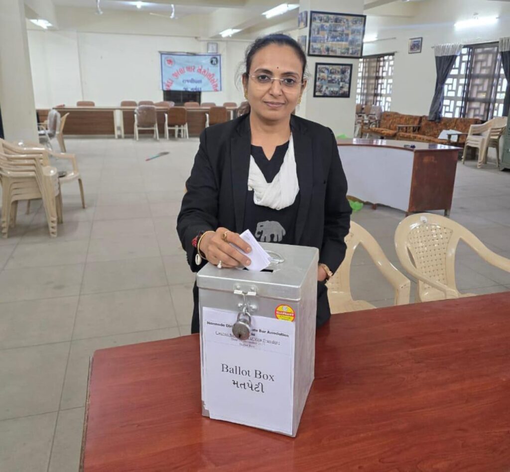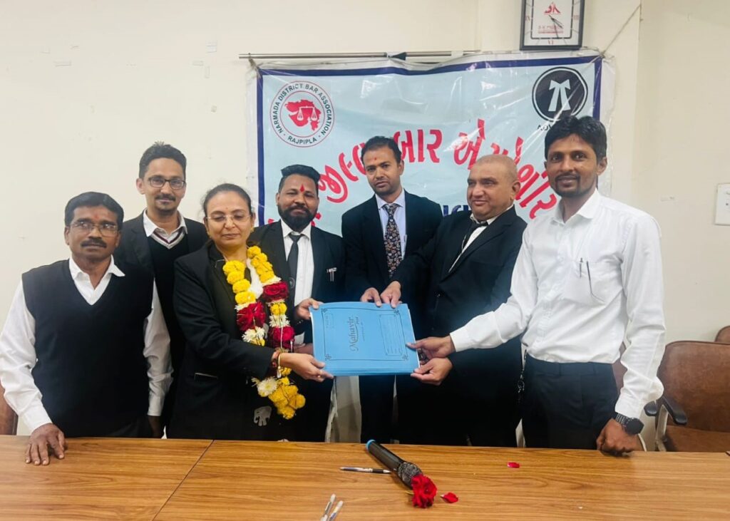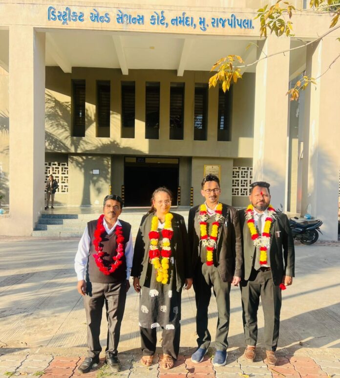 આજ રોજ નર્મદા જિલ્લા બાર એસોસિએશનની યોજાયેલી ચૂંટણી રાજપીપલા કોર્ટ ખાતે યોજાઈ હતી .નર્મદા જિલ્લા બાર એસોસિએશનના પ્રમુખ પદે 12 મી વખતકુ. વંદનાબેન ભટ્ટ બિન હરીફ ચૂંટાઈ આવ્યા હતા . નોંધપાત્ર છે કે તેઓ છેલ્લા બાર (12) વર્ષથી સતત પ્રમુખ પદે સેવારત રહી બાર એસોસિએશનને માર્ગદર્શન આપી રહ્યા છે.આમ નર્મદા બાર એસોસિઅન માં પ્રમુખ તરીકે એકધારો મહિલા પ્રમુખ વંદના બેન ભટ્ટ નો ઈજારો રહ્યો હતો. આજની ચૂંટણીમાં મંત્રી પદે આદિલ પઠાણ. તેમજ ઉપ મંત્રી તરીકે પ્રવીણભાઈ તડવીપણ બિન હરીફ ચૂંટાયા હતા. એક માત્ર ઉપપ્રમુખ પદની ચૂંટણી યોજાઈ હતી, જેમાં કુલ 135 મતદારોમાંથી 112 મતદારોએ મતદાન કર્યું હતું. મતગણતરી બાદ