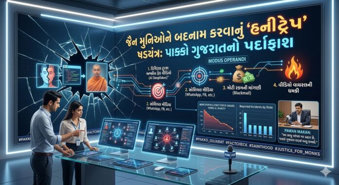અમદાવાદ: દેશભરમાં અત્યારે જૈન સમાજના પવિત્ર સાધુ-સંતો અને મુનિ ભગવંતોને નિશાન બનાવી તેમને બદનામ કરવાનું એક ભયાનક અને સુનિયોજિત ષડયંત્ર ચાલી રહ્યું છે. ‘પાક્કો ગુજરાત’ ન્યૂઝના આતંરિક સંશોધનમાં બહાર આવ્યું છે કે એક આખું ગિરોહ સક્રિય છે, જે ડિજિટલ ટેકનોલોજીનો દુરુપયોગ કરી ધર્મની ગરિમાને ખરડાવવાનું પાપ કરી રહ્યું છે.