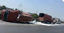 સુરત જિલ્લામાંથી પસાર થતા નેશનલ હાઈવે 48 પર આજે એક માર્ગ અકસ્માતની ઘટના બની હતી. કામરેજ તાલુકાના વાવ ગામ નજીક હાઈવે પરથી પસાર થઈ રહેલા એક ટેમ્પોનું અચાનક ટાયર ફાટી ગયું હતું. ચાલકે વાહન પરનો કાબૂ ગુમાવતા ટેમ્પો અધવચ્ચે જ પલટી મારી ગયો હતો. અકસ્માતને પગલે હાઈવે પરના ટ્રાફિક પર થોડી અસર પડી હતી.