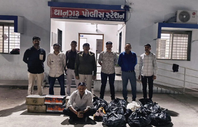 થાન પોલીસે શહેરના મસાણના મેલડી માતાજીના ઓટા પાસેથી બાતમીના આધારે વિદેશી દારૃની ૫૩૭ બોટલ તથા બિયર ૧૪૪ ટીન સહિત રૃ.૧,૮૬,૭૮૦ના મુદ્દામાલ સાથે અશ્વિનભાઈ ઉર્ફે અશોકભાઈ હમીરભાઈ રાઠોડ (રહે. આંબેડકરનગર,થાન)ને ઝડપી પાડયો હતો. ઝડપાયેલા આરોપીની પુછપરછમાં પ્રકાશભાઈ લાલજીભાઈ સોલંકી (રહે.થાન)ની પણ સંડોવણી બહાર આવી હતી. પોલીસે બંને શખ્સ વિરૃદ્ધ પ્રોહીબીશન એક્ટ હેઠળ ગુનો નોંધી કાર્યવાહી હાથ ધરી છે.