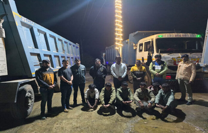 સુરેન્દ્રનગર જીલ્લામાંથી પસાર થતા હાઈવે સહિત મુખ્ય માર્ગો પર થી મોટાપાયે ગેરકાયદેસર ખનીજ સંપત્તિનું ખનન અને વહન થતું હોવાની ફરિયાદોને ધ્યાને લઈ ચોટીલા ડેપ્યુટી કલેકટર અને ટીમે મોડી રાત્રે ચોટીલા-જસદણ હાઈવે પર સરપ્રાઈઝ ચેકિંગ હાથ ધર્યું હતું. જેમાં લાખણકા ગામ પાસે આવેલી અલખધણી હોટલની બાજુમાંથી ગેરકાયદેસર સાદી રેતીનું વહન કરતા ઓવરલોડ અને રોયલ્ટી પાસ વગરના આઠ ડમ્પરો અને સાદી રેતી સહિત ફૂલ રૃ.૩.૨૨ કરોડનો મુદામાલ કબજે કર્યો હતો અને ચોટીલા મામલતદાર કચેરી ખાતે સીઝ કરવામાં આવ્યો હતો. તેમજ તમામ ડમ્પરોના માલિક સામે કાયદેસરની કાર્યવાહી હાથ ધરી હતી.