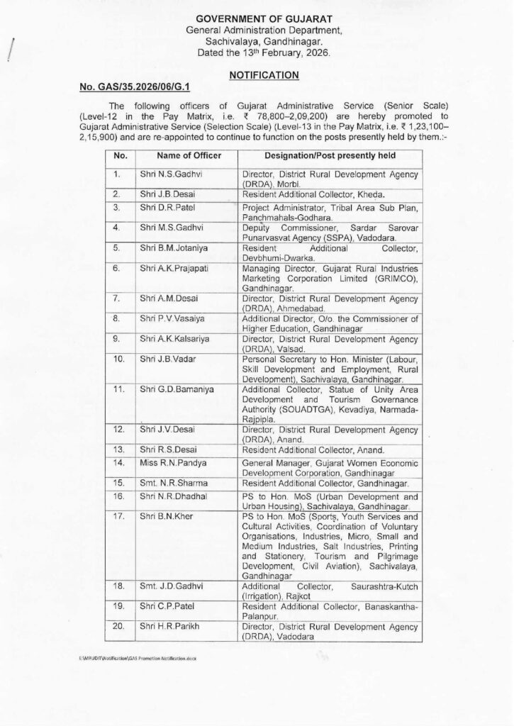 આ યાદીમાં નિવાસી અધિક કલેક્ટર (RAC), DRDA ના નિયામકો અને મંત્રીઓના અંગત સચિવો (PS) નો સમાવેશ થાય છે. જુઓ સંપૂર્ણ યાદી…