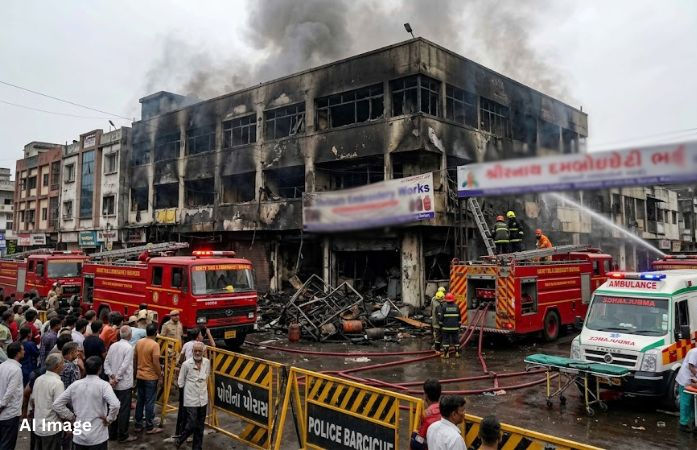 અહેવાલ : ( રવિકુમાર કાયસ્થ ) સુરતના કાપોદ્રા વિસ્તારમાં આવેલી એક ઇમારતમાં આજે ભીષણ આગ ફાટી નીકળતા મોટી દુર્ઘટના સર્જાઈ છે. આગની લપેટમાં આવેલા બે LPG ગેસ સિલિન્ડર ધડાકાભેર ફાટતા આસપાસનો વિસ્તાર ધણધણી ઉઠ્યો હતો. આ ઘટનામાં અત્યાર સુધીમાં બે લોકોના મોત નિપજ્યાં છે, જ્યારે 8થી વધુ લોકો ગંભીર રીતે ઈજાગ્રસ્ત થયા છે.