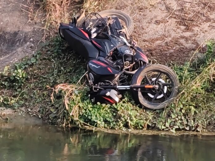 ડભોઇ તાલુકાના ચાંદોદ પોલીસ સ્ટેશન હદ વિસ્તારના તેનતલાવ ગામની સીમ પાસેથી પસાર થતી નર્મદા કેનાલ પર ગુરુવારે એક ગમખ્વાર અકસ્માત સર્જાયો હતો બાઇક પર સવાર બે યુવાનો કેનાલના માર્ગ પરથી પસાર થઈ રહ્યા હતા ત્યારે અચાનક સ્ટેયરિંગ પરથી કાબુ ગુમાવતા બાઇક સીધું કેનાલના ઊંડા પાણીમાં ખાબક્યું હતુંચાંદોદ પોલીસ સૂત્રો પાસેથી મળતી માહિતી મુજબ જિલ્લો નર્મદા તાલુકો નાંદોદ ગામ જેસલપુરના શેઠ ફળિયા ના રહેવાસી બે મિત્રો પ્રકાશ ઠાકોર ભાઈ બારીયા અને રણજીત જશુભાઈ બારીયા pulsar બાઈક લઈ વડોદરા માસીને ત્યાં જવા નીકળ્યા હતા.
