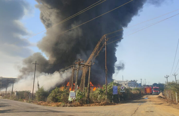 આગના બનાવને પગલે ભારે દોડધામ મચી હતી. ભીષણ આગ લાગવાના કારણે દૂરદૂર સુધી ધૂમાડા ગોટા જોવા મળી રહ્યા છે. જોકે, ફાયર વિભાગની ટીમ દ્વારા આગ પર કાબૂ મેળવવાનો પ્રયાસ ચાલી રહ્યો છે.