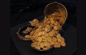 આ શોધ ત્યારે થઈ જ્યારે વિસ્તારમાં નવા કન્સ્ટ્રક્શન પહેલા રેસ્ક્યૂ એક્સકેવેશન કરવામાં આવી રહ્યુ હતું. ખોદકામ દરમિયાન પુરાતત્વીય ટીમે એક જૂના પથ્થરનો પાયો હટાવ્યો. પાયાની નીચે તેમને તૂટેલું માટીનું વાસણ મળી જેને કંદ્યુષ્કા કહેવામાં આવે છે. આ નાનું વાસણ હોય છે જેમાં હેન્ડલ અને સાંકડી ગરદન હોય છે. જ્યારે ટીમે વાસણના ટુકડાઓની તપાસ કરી, ત્યારે તેમને અંદર સોનાના સિક્કાઓનો મોટો સંગ્રહ મળ્યો. કુલ 409 સોનાના સિક્કા મળી આવ્યા.